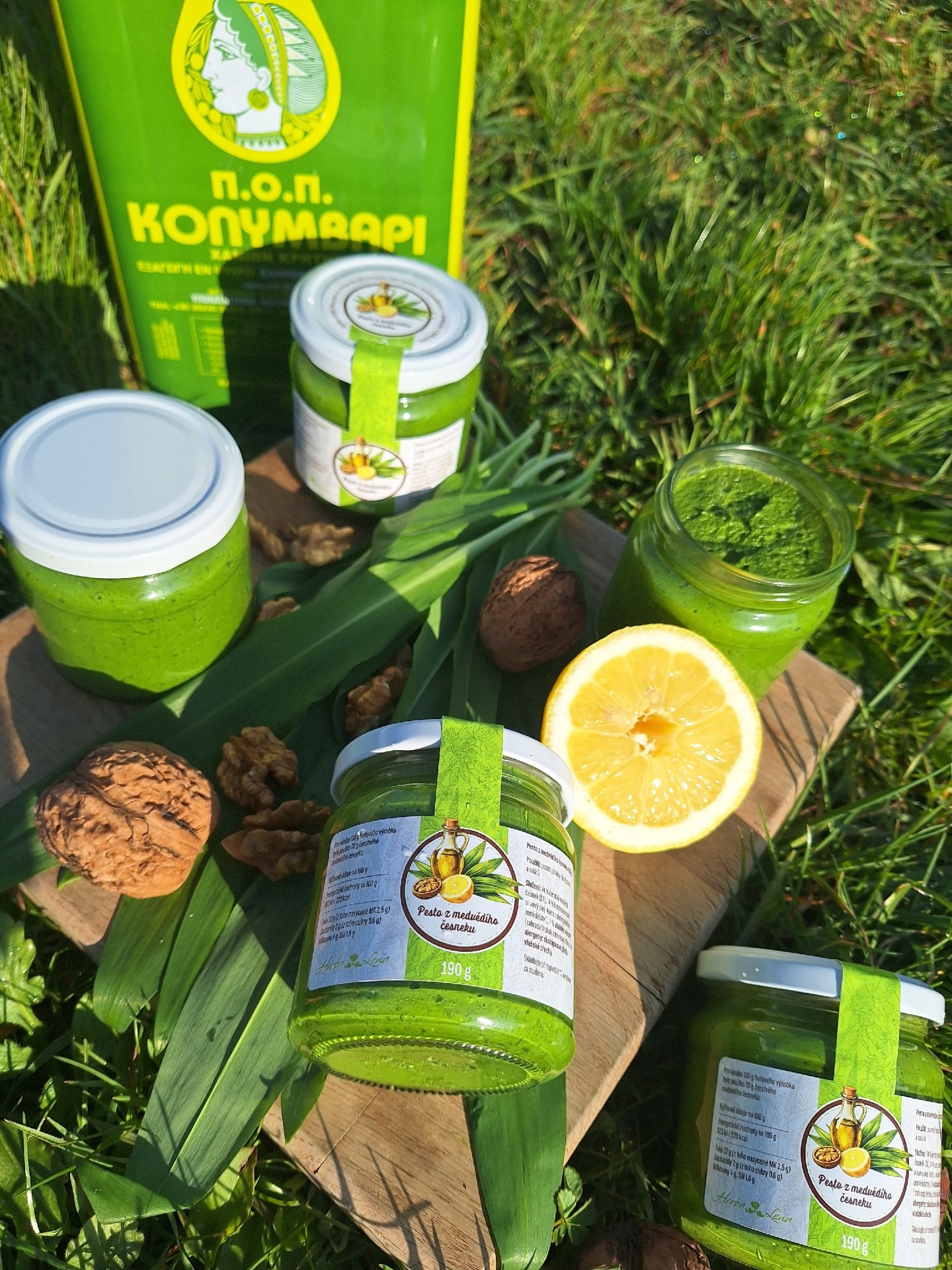 Složení: 74% čerstvý medvědí česnek ( ČR), 14% Extra panenský olivový olej ( Kréta z ekologického zemědělství )11% vlašské ořechy ( zahrada Vrbka ), citronová šťáva, sůl